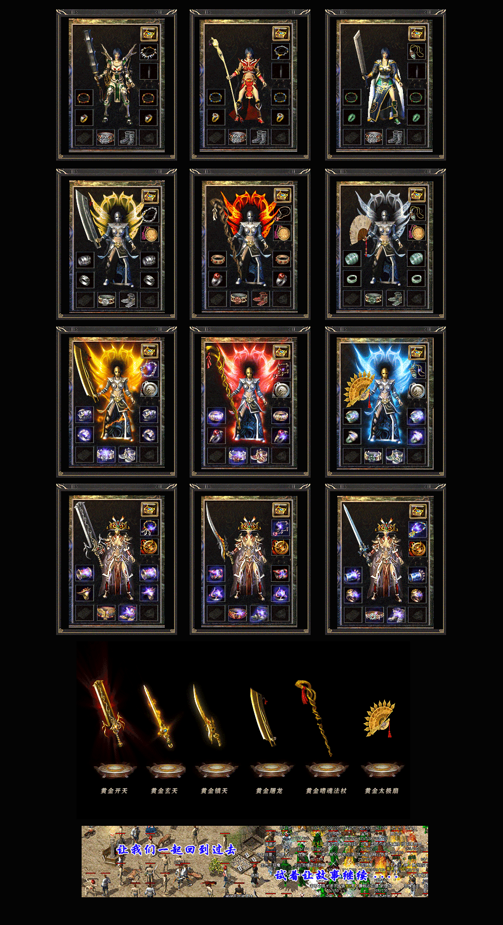 装备体系:沃玛→祖玛→赤月→雷霆→强化雷霆→战神